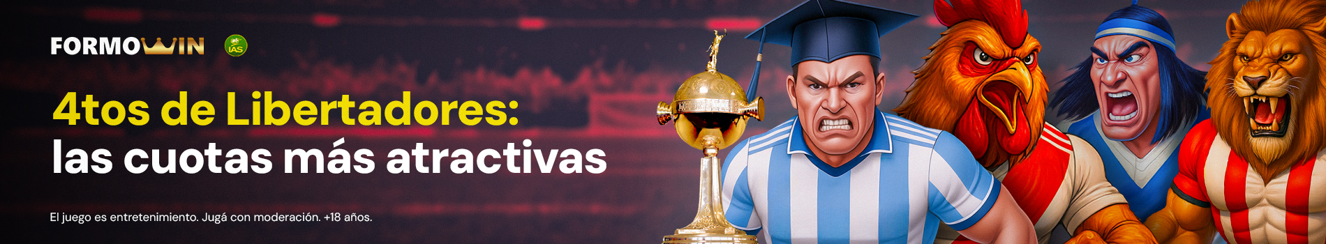 Jugá vos también los partidos de vuelta de los 4tos de Final de la Libertadores y hacé tus mejores jugadas en Formowin, tu casino online de confianza en Formosa donde podés jugar de forma legal y segura.