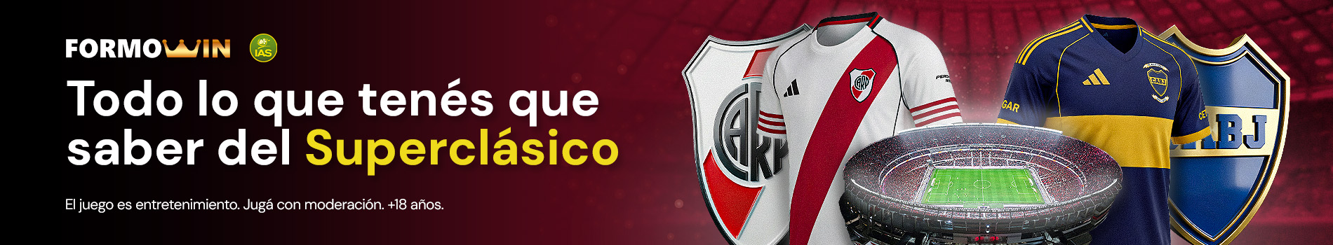 ¡Se juega una nueva edición del Superclásico! El domingo 19 de abril desde las 17:00 HS se disputará un nuevo partido entre los dos equipos más grandes del fútbol argentino. En Formowin conocé lo más importante, desde historial, estadísticas y las mejores cuotas para apostar en el Superclásico.