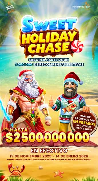 Los Prize Drops Semanales de Sweet Holiday Chase están activos semanalmente del 19 de noviembre de 2025, a las 19:01 CET, al 14 de enero de 2026, a las 18:59 CET (el “Período Promocional”). Esta es una promoción de red operada por Pragmatic Play, por lo cual, los premios se reparten entre distintos operadores.
